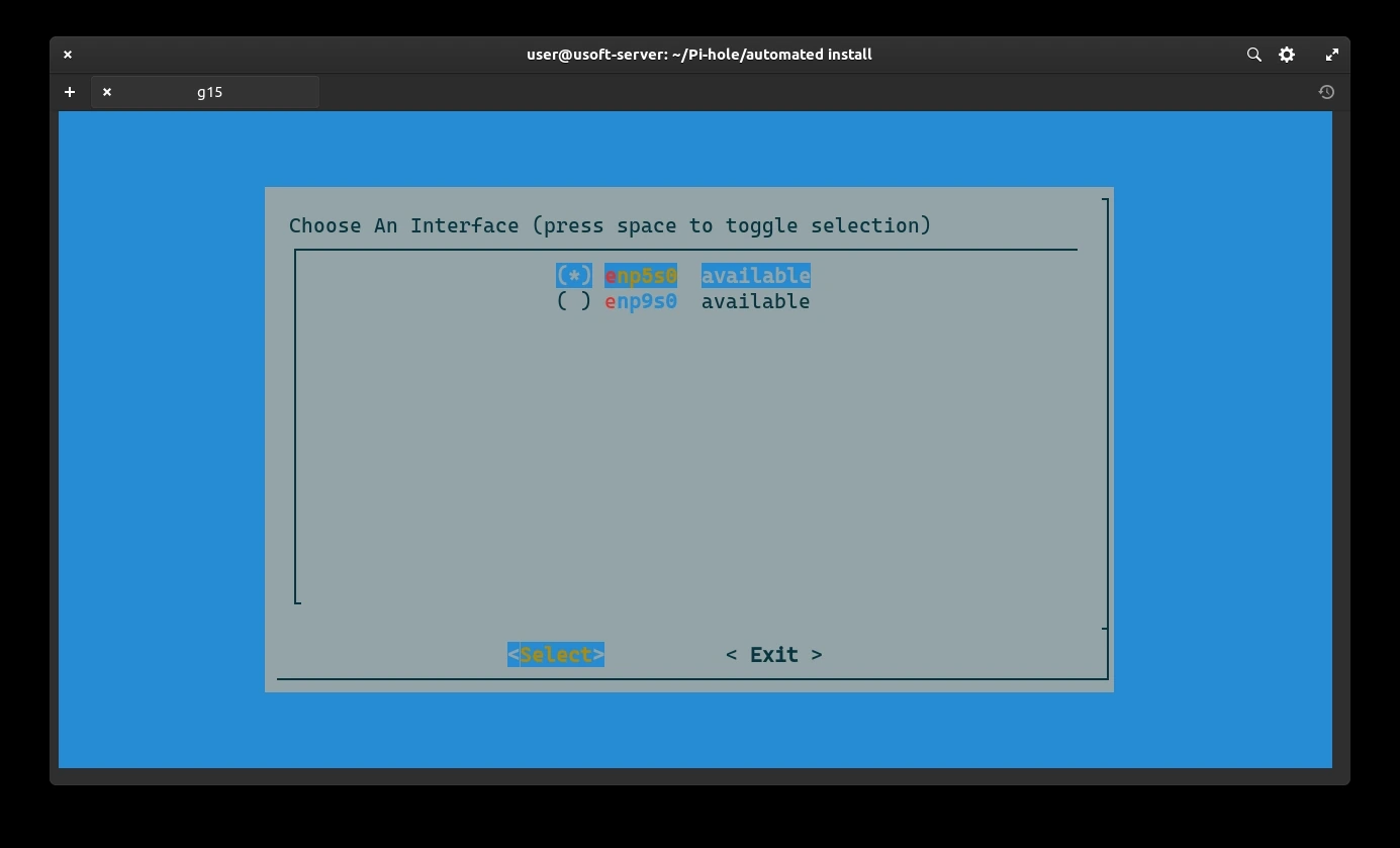 Selezionare la stessa interfaccia a cui era stato assegnato l'ip usato durante tutta la procedura. In questo caso la prima. Premere Invio per confermare.