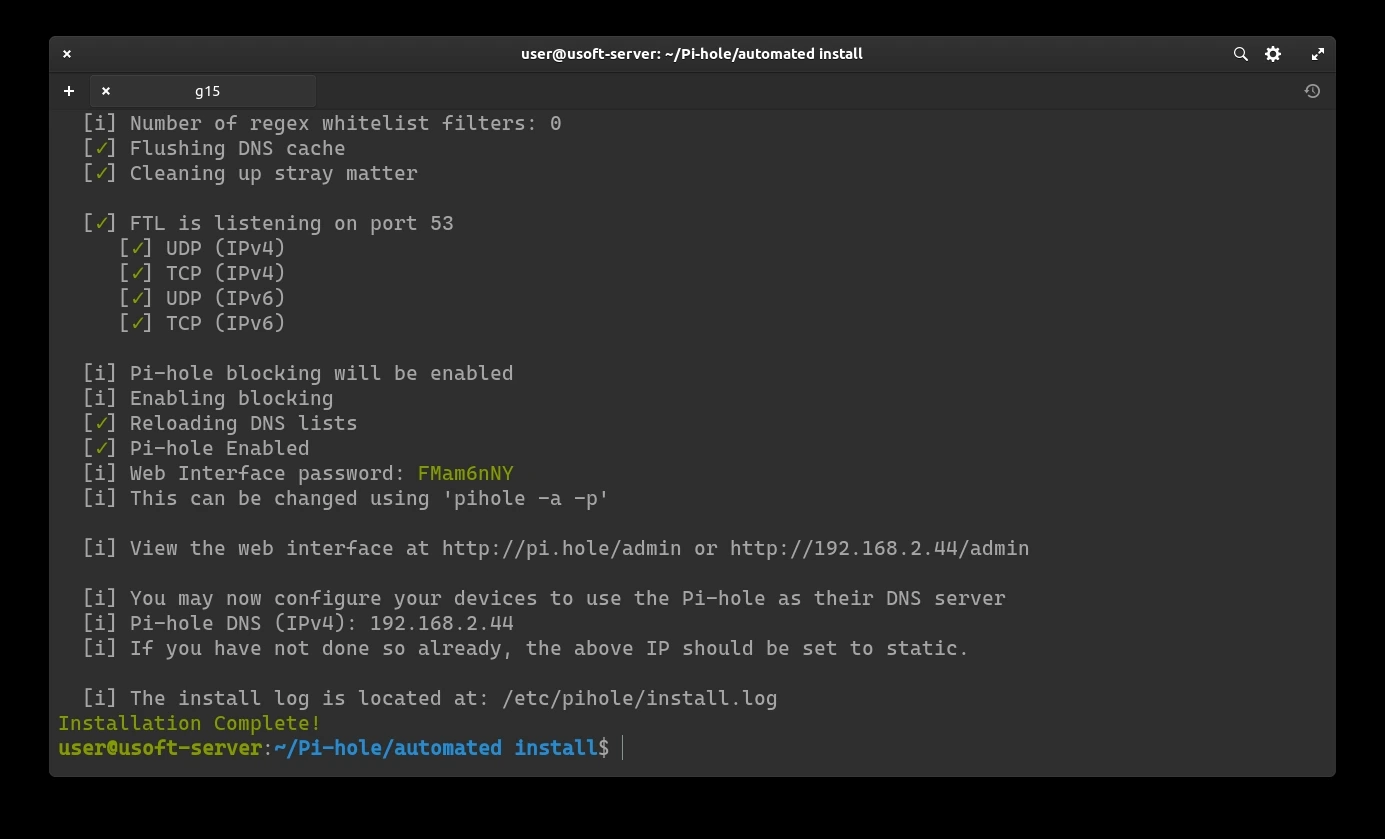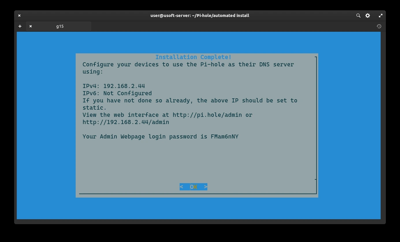 Terminata la procedura di configurazione di Pi-Hole, si può procedere a cambiare la password dell'interfaccia admin (da non confondere con la password utente).